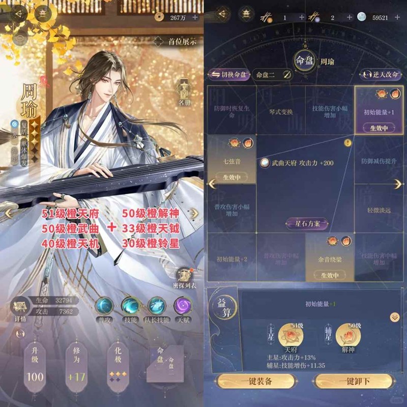 2. 周瑜命盘必须有余音+七弦音+能量+1