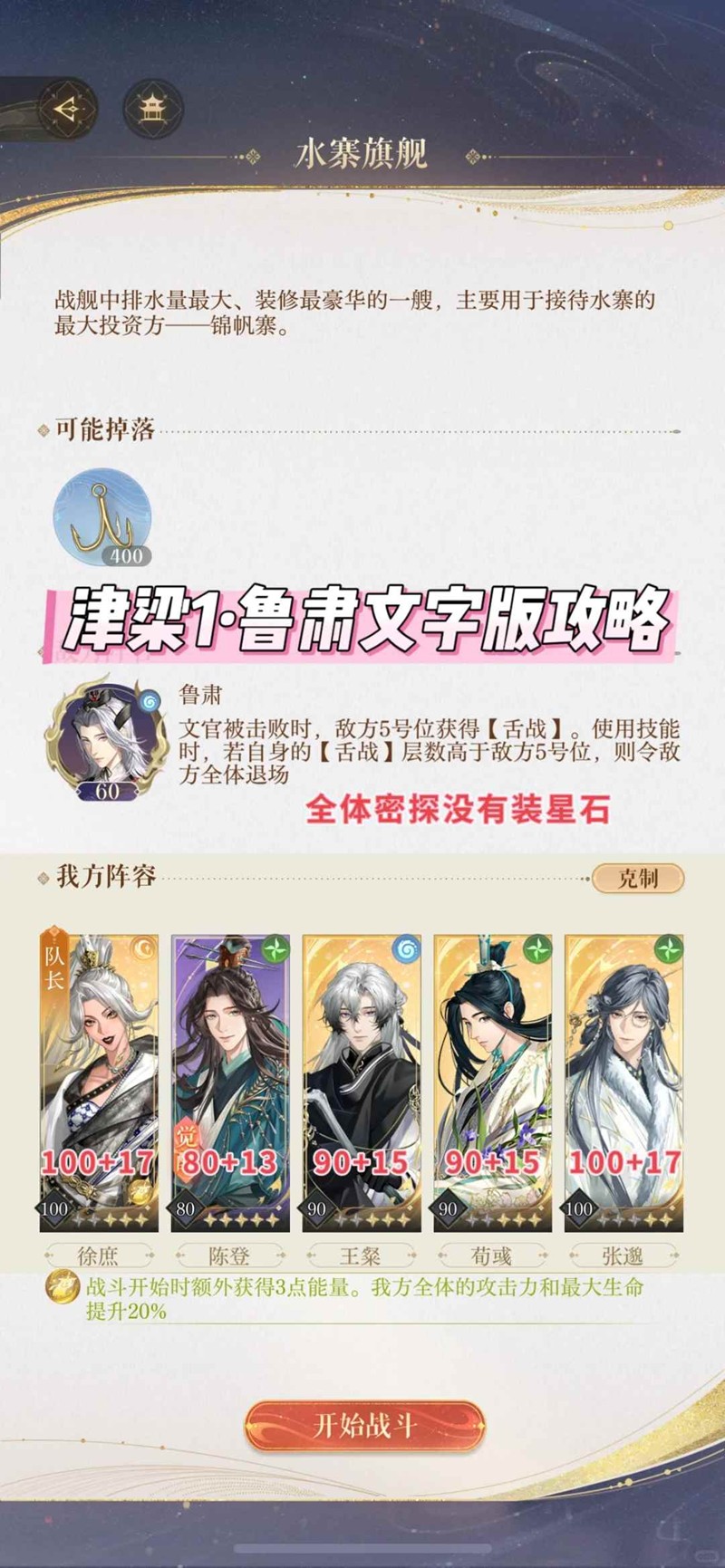 2. boss鲁肃普攻会获得1层【舌战】,大招回合存活几个文官鲁肃就会获得几层舌战