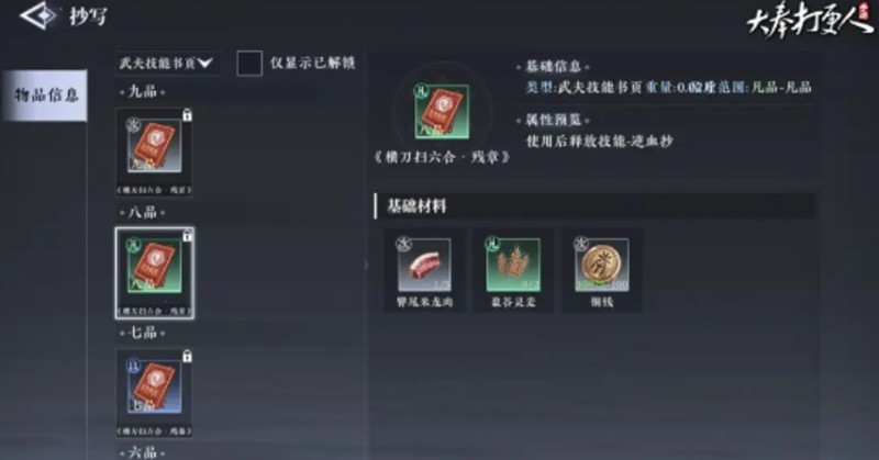 除了烹饪外,大奉打更人还提供了其他几种副职选择。铸甲可以制作防御装备,饰品制作能提升角色属性,抄写可以学习新招式,炼丹则能制作各种功效不同的丹药。每种副职都有其独特的作用,玩家可以根据自己的游戏需求来选择发展方向。
