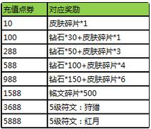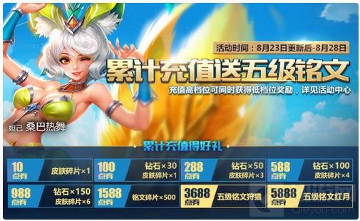 累计充值送钻石,皮肤碎片,高级铭文等好礼!