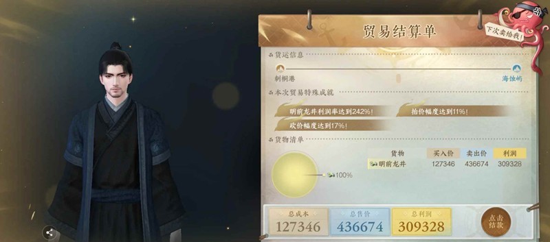 刺桐港买明前龙井卖到海蚀屿,利润30w+