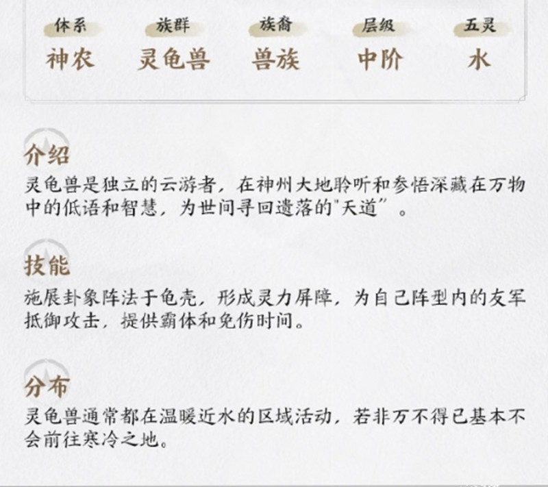 神龟灵兽通常栖息在水源附近的湿润地带,想要捕获这只灵兽的玩家可以重点在这些区域探索。仙剑世界中的神龟灵兽确实是非常实用的战斗伙伴,以上就是关于这只灵兽的详细介绍和使用技巧了。