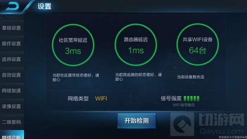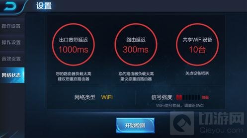 在设置界面中,您可以对当下的网络环境进行检测,有三项检测标准: