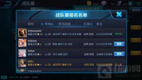 4)指挥官可以进入【报名名单】查看,筛选自己需要的队员,并进行邀请: