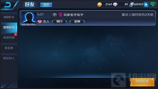 1)好友列表中,SNS好友、游戏好友,申请列表、黑名单、附近的人、师徒列表中,玩家性别前: