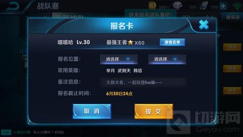 2)报名卡里系统会自动拉取队员的相关信息,队员可以选择自己想要主打的两个位置,并填写备注信息: