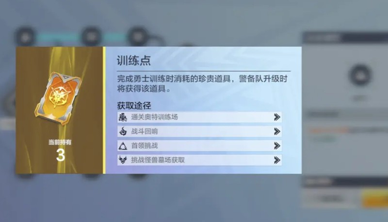 警备队的勇气训练是全队共享的养成系统。通过消耗训练点进行加点,可以为所有奥特曼提供属性加成。潜能档案则会在达成特定条件时升级,比如解锁迪迦所有形态后,闪耀迪迦的潜能突破会提升全队属性。