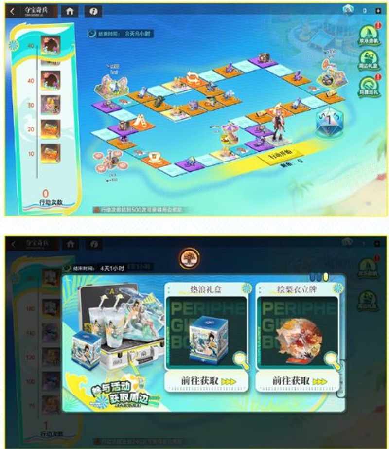 活动期间,专员们可使用「欢乐骰」投掷出随机行动步数,畅玩夏日水上乐园!行动次数达到指定次数即可获得全新头像框「潮玩玛雅」、全新游戏称号「盛夏浪花征服者」,更有皇女零全新皮肤「雪浪浮光」、惊喜游戏周边「热浪礼盒」、「绘梨衣立牌」以及「限定皮肤任选」等超多丰厚豪礼静候专员!
