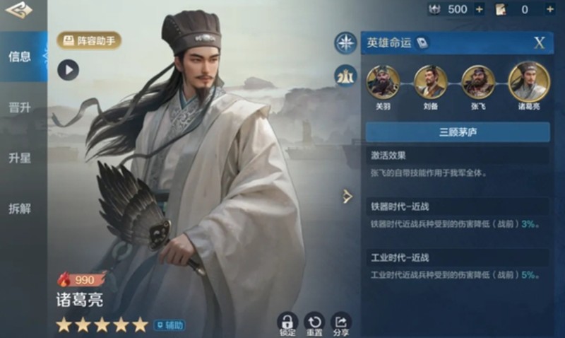 诸葛亮最适合搭配肉盾型或防守型阵容,可以完美融入罗马体系,与恺撒、刘备或张飞等武将组成强力组合。如果不走双减路线,也可以给他配备法系输出技能,兼顾防御和进攻能力。他的拆解技能"阳焰"能对两名敌人造成智力伤害并附加灼烧效果,与查尔曼或贞德等武将搭配时能发挥出极佳的效果。