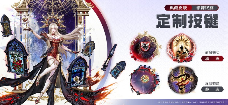 7月18日维护后-9月25日,彼岸花全新典藏皮肤「罪棘终宴」将开启限时兑换,售价2688达摩币。大人们在彼岸花典藏皮肤首次上架期间兑换皮肤,即可获赠对应的定制按键——[定制按键·罪棘终宴]。