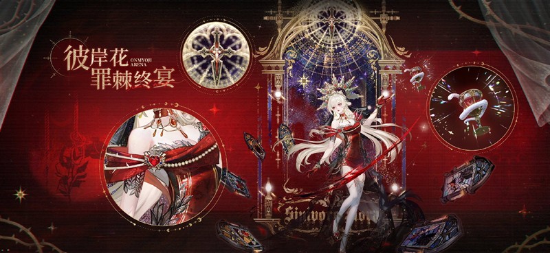 「罪棘终宴」整体采用暗黑风格,搭配血色十字、荆棘等元素,展现出彼岸花的神秘与强大。特效设计方面,神秘的请柬将宾客们聚集在庄园晚宴,十二位高洁的身影在彩窗中映照出丑恶嘴脸,谎言与罪恶如血滴落而下,孕育出最为美艳的彼岸之花。