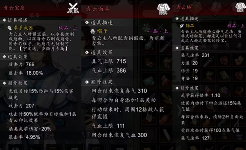 青云传承的核心在于青云印记系统,每次命中、闪避或反击都能叠加印记。印记不仅能削弱敌人的攻击和命中率,叠满后还能大幅降低对手的威胁。配合专属装备烟涛微茫,还能进一步压制敌人的闪避能力,这套减益机制让青云传承在对抗高攻敌人时游刃有余。