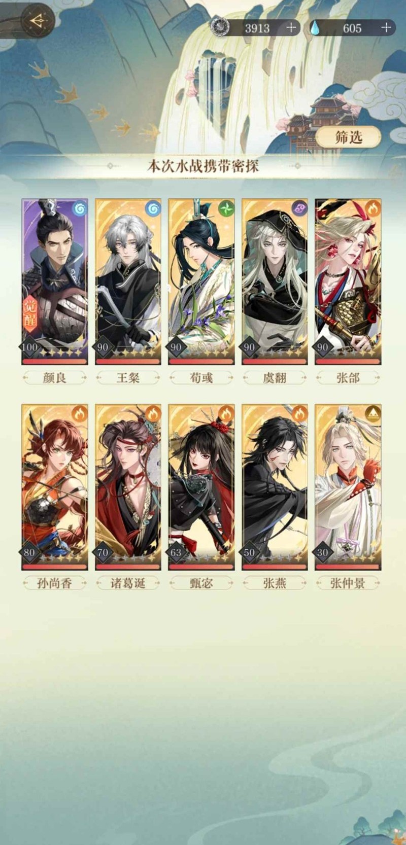 3.配队:张燕+甄宓+张郃+孙尚香+诸葛诞(如果你的孙尚香练度高,建议诸葛诞放孙尚香前)