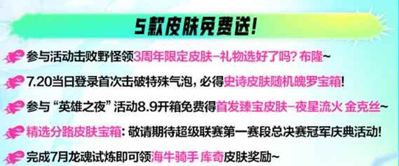 完成7月龙魂试炼即可领海牛骑手库奇皮肤奖励~