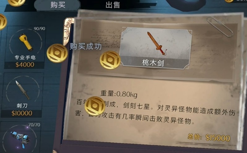 作为游戏中对抗灵异怪物的专属武器,桃木剑不仅造型独特,还拥有特殊的攻击效果。在超自然行动组中,桃木剑是通过游戏内货币直接购买的武器。这把武器取材自被天雷击中的桃木,由龙浒山上的高人精心打造而成。玩家只需要积攒足够的游戏币,就能在商店中轻松获得这把强力武器。