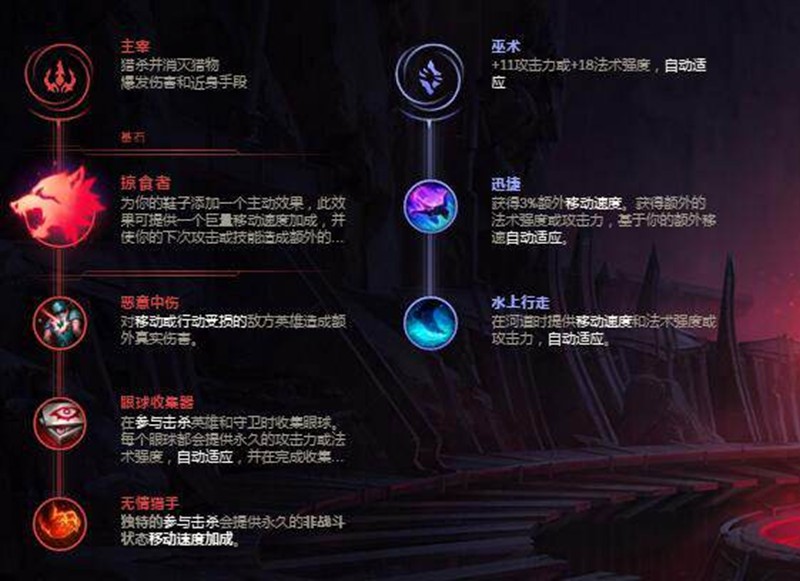 主流选择是掠食者符文,配合无情猎手和迅捷提升机动性。红色系点出灵性猎手减少主动装备冷却,蓝色副系选择绝对专注和焦灼增强前期压制力。这套符文能显著提升安妮的游走效率,弥补腿短的缺陷。