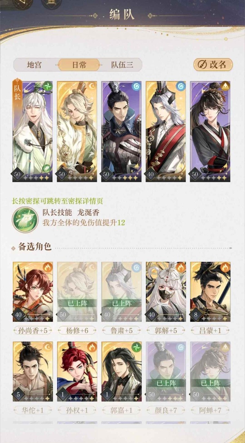 盾+奶+主输出,剩下两个位置可以带王粲/鲁肃/陈登或者其他输出