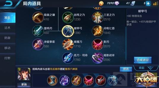 出装推荐:急速战靴、破灭君主、无尽战刃、影刃、泣血之刃、破甲弓