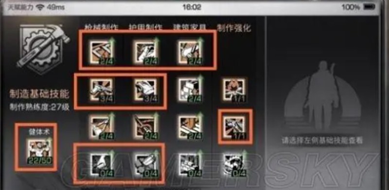 首先我们先来看看制作天赋,在这里推荐50级主天赋"健体术"是制作系的核心天赋,不仅能减少消耗,还能提升血量上限和暴击率。护甲制造冷却和武器制造相关天赋也值得投入,这些都能有效提高制造效率。武器护甲拆卸材料爆率提升天赋对于资源获取很有帮助。所以是个非常不错的天赋选择。