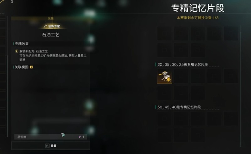 石油工艺也是不可或缺的专精,通过电炉加工星尘矿和便携混合燃油,玩家可以获得大量星辰源质。这种资源在游戏后期用途广泛,是重要的交易货币和制作材料。星尘采矿平台专精能提升20%的矿产量,配合石油工艺使用,可以确保玩家获得稳定的星辰源质供应。