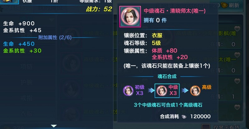 魂石按照品质分为六个等级,从低到高依次为白、绿、蓝、紫、粉、橙。5级魂石属于粉色品质,可以通过日常活动获取,或者用3个4级魂石合成获得。在镶嵌选择上,不同部位的装备适合不同类型的5级魂石,需要根据门派特点和战斗需求进行搭配。