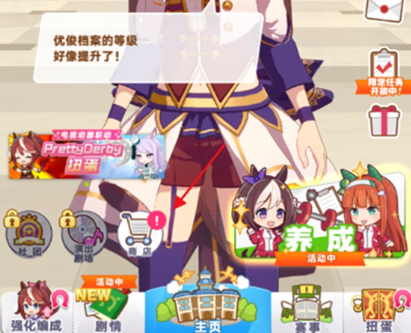 进入游戏主界面后,右侧可以看到养成选项,点击进入就能找到训练功能。在训练页面中,玩家需要选择要培养的赛马娘和配套的协作卡牌。