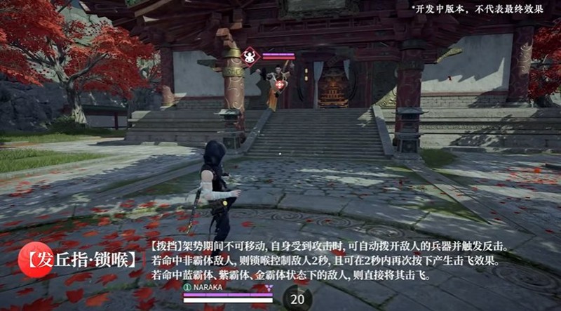 技能二【发丘指·锁喉】:向前方突进戳刺,命中非霸体敌人时会锁喉控制2秒,期间可再次按下技能将其击飞。若命中霸体状态的敌人,则直接将其击飞。