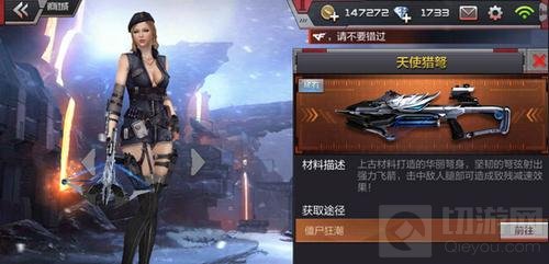 天使猎弩是一把手弩形的副武器。它的威力低于风之子,高于沙鹰。可以一箭爆头,其他部位则基本可以两枪击杀;天使猎弩的射速低于手枪,但同为每箭换弹,天使猎弩的射速还是远高于风之子的。天使猎弩兼具手枪的灵活性和弓弩型武器的威力。它的不足之处则是需要足够的走位以及闪躲能力,否则在你的两箭之间,敌人完全可以将你击杀。使用天使猎弩需要玩家有着极高的灵活走位能力和对猎弩射击节奏的精确把握。