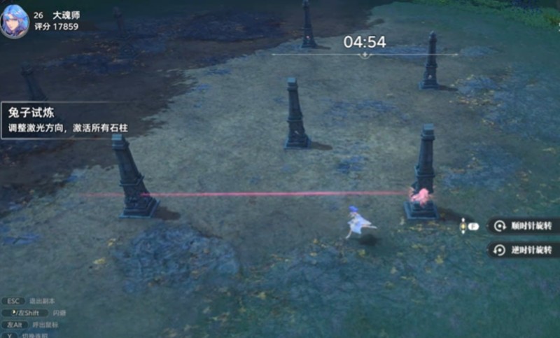 兔子试炼在斗罗大陆猎魂世界的多个区域都有分布,其中斗灵村右侧就有一个挑战点。这个试炼的核心玩法是通过操控机关来改变激光路径,让激光能够连接场景中的所有石柱。石柱上都有特殊标记,是激光传导的关键节点,而机关装置则可以调整激光的发射方向和角度。