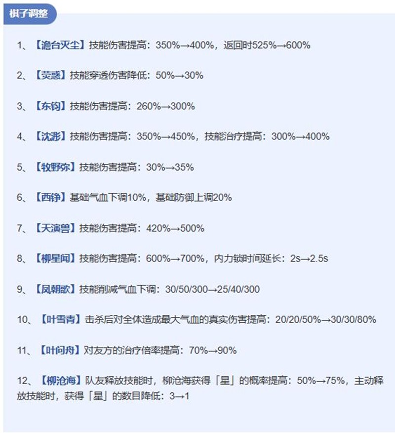 除了全新心悟之外,逆水侠棋首次正式更新还将迎来非常丰富的平衡性调整,让不同的棋子都可以在棋盘展示自己的得意武学;还将对一系列心悟、羁绊、装备进行平衡,或许有更多阵容将大放异彩!(具体调整请以上线版本为准)