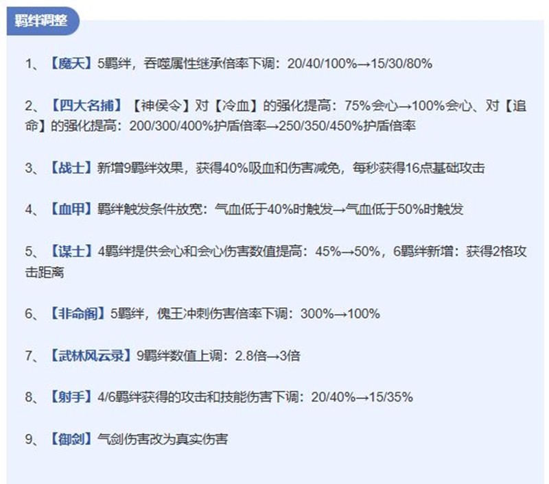 7、【武林风云录】9羁绊数值上调:2.8倍→3倍