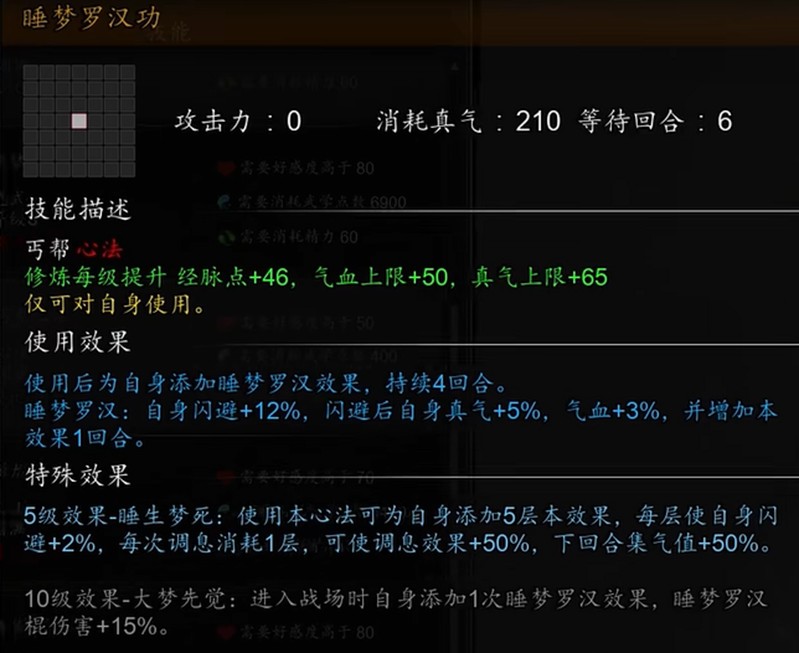 刀法流派的心法搭配以四象无极功、睡梦罗汉功和禅宗伏魔功为主。四象无极功依然是核心增伤心法,睡梦罗汉功提供闪避和回血效果,禅宗伏魔功则大幅提升暴击伤害。这套搭配让刀法流派既有高爆发输出,又具备不错的生存能力,特别适合应对高难度战斗。
