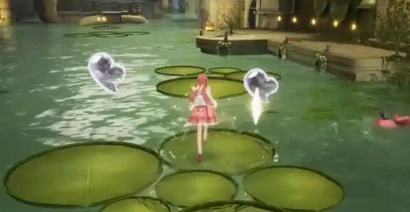 水道区域的荷叶上漂浮着水泡,跳跃时要注意避开,即使碰到也只会损失少量血量。通过荷叶来到对岸平台后需要修理两台电机,修理时别忘了右边蓝色水管里还藏着两颗灵感露珠。之后会遇到举着荷叶帮忙的青蛙NPC,在前进前记得去右边管道转一圈获取奇想星。