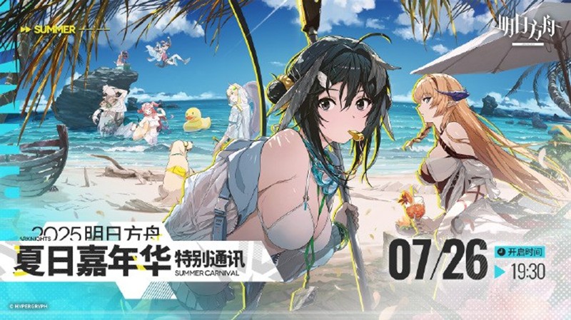 7月26日19:30,让我们一起锁定直播间,共同期待这场充满惊喜的《明日方舟》2025夏日嘉年华特别通讯直播吧,更多相关内容,我们切游网会密切关注,为您带来最新内容。敬请期待。