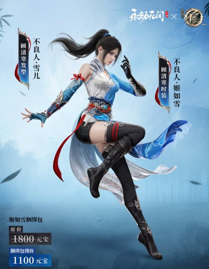 2、新增顾清寒捆绑包【姬如雪捆绑包】。捆绑包内含顾清寒极品时装【不良人·姬如雪】、顾清寒极品发型【不良人·雪儿】、顾清寒极品语音包【姬如雪语音包】。捆绑包原价1800元宝,折扣价1100元宝。单独购买对应单品即可享受折扣,购买捆绑包将享受更多折扣