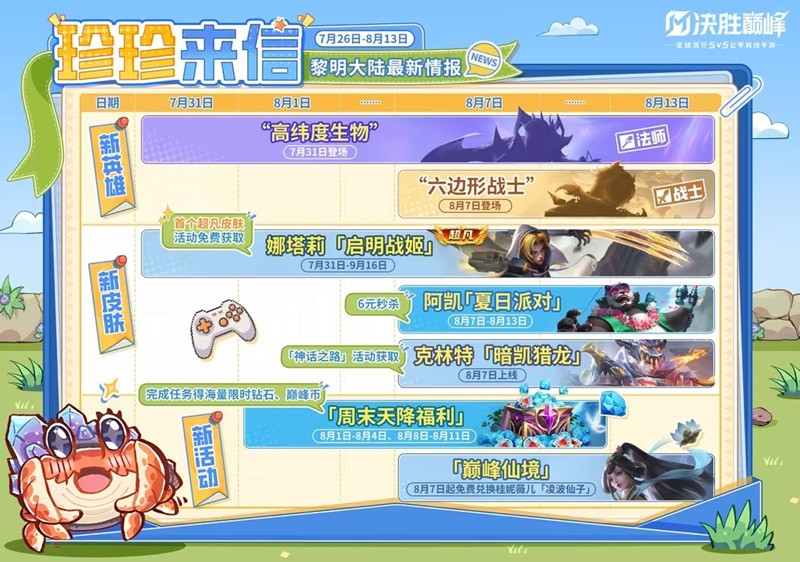 -战士英雄【六边形战士】8月7日上线。
