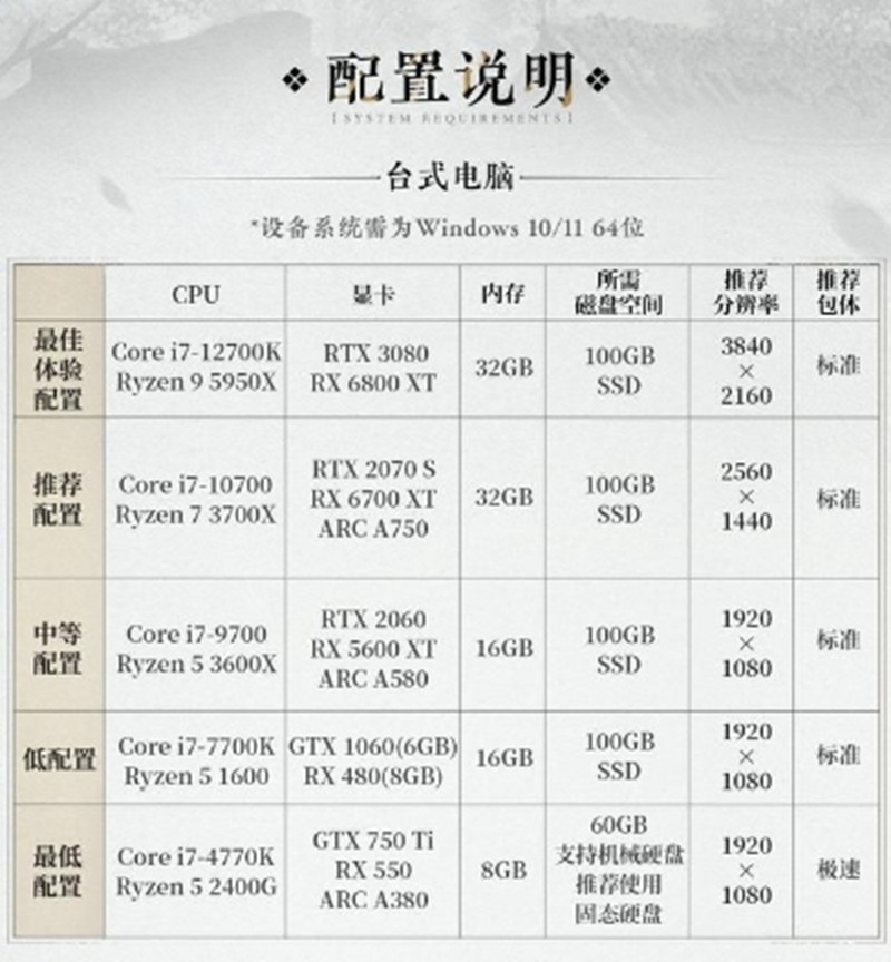 燕云十六声作为近期备受关注的武侠题材开放世界游戏,其配置要求成为许多玩家关心的问题。一些小伙伴的设备配置可能不太高,那么燕云最低配置要求是什么?我们来一起看看吧~