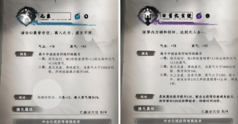 万法森罗能提升筋骨和根骨属性,使角色承受伤害降低20%。这本心法特别适合注重生存能力的玩家,在战斗中能显著提高容错率。玩家可以根据自身流派需求,灵活搭配多本心法进行修炼。