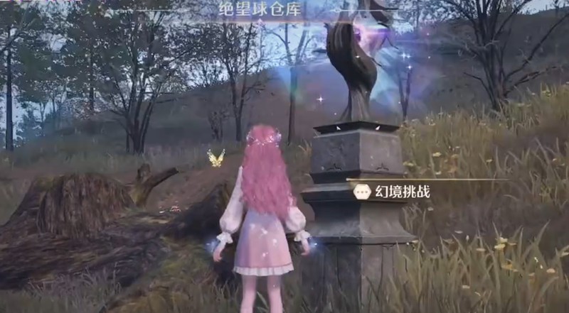 曦光毛团出现在祈愿树林区域,具体位置在绝望球仓库东南方向。到达该区域后需要保持直线前进,遇到障碍物时直接跳跃通过,绕路可能会导致错过目标地点。在指定位置可以看到全身散发着金色光芒的曦光狐,这就是我们要寻找的目标生物。