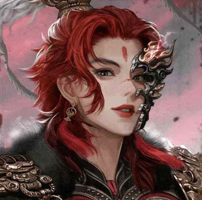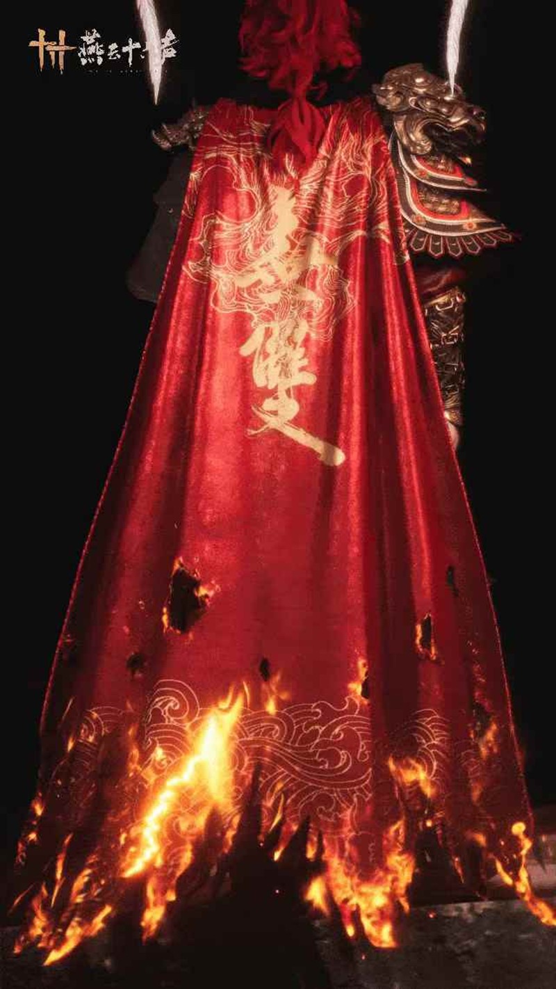 胸板甲如龙鳞曜日,对肩吞兽头盘踞,披膊如翼蔽空,胫甲覆履环护腿部,步步踏破边关霜雪。沙场百战的将军肩系赤色披风,如同尚未冷却的热血,于硝烟烈火中猎猎翻飞。