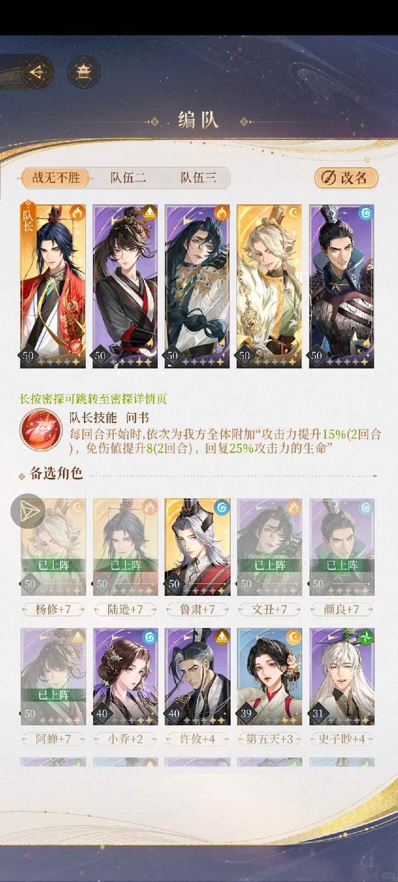 练度:全部50+7,鲁肃40+6
