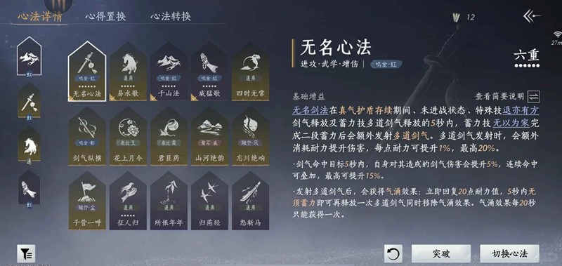 无名剑可以不需要凌云踏踹进团,或者踹人(除非在对面只有一个人或者很残血依靠三下点剑就能秒掉的情况下),无名剑的凌云踏是用来找位置,以及逃跑换位置的,无名剑本身就需要很高的输出环境,自保能力差,觉障林内主要就依靠剑气,这样完全失去了其优势