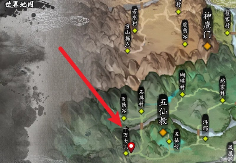 在逸剑风云决中,十万大山区域隐藏着一个充满宝藏的神秘洞穴。玩家需要先前往十万大山地图,找到一棵醒目的黄色大树作为地标。在大树左侧仔细探索,会发现一条被植被遮掩的隐秘小道,靠近后会出现【密道】的交互选项,选择进入就能发现藏宝洞的入口。
