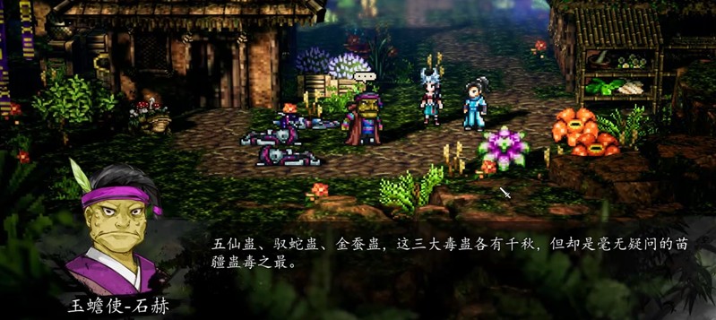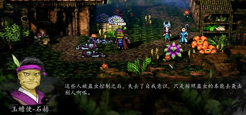 石赫的外貌特征非常明显,他有着沧桑的面容和独特的外形,甚至带着几分蟾蜍的特征。与他对话时,他会详细讲解关于蛊人的研究,包括蛊虫如何控制人体、兵祸一脉如何运用这些禁术等内容。这些对话不仅能帮助玩家了解剧情背景,还能获得关于三大毒蛊的重要信息。