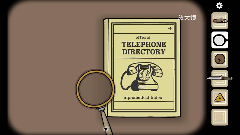 在游戏过程中打开抽屉里的电话本,点击放大镜就能放大查看上面的号码。由于逃离方块悖论最初是手机游戏,即便移植到PC端,放大镜功能仍然保留了查看小字体的实用设计。