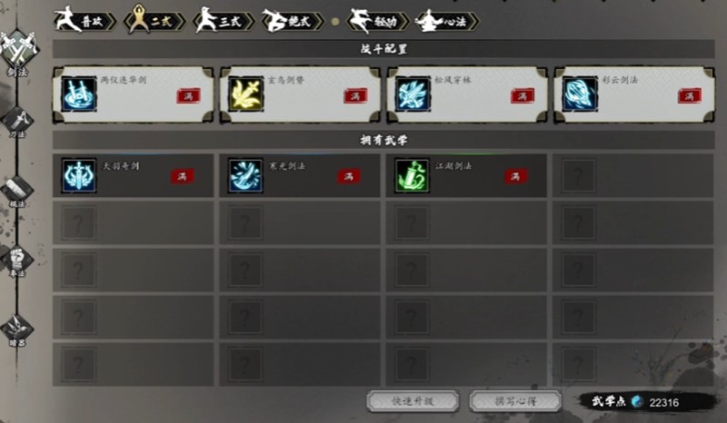 逸剑风云决手机版中剑法系统是游戏的核心玩法之一。作为一款武侠题材的角色扮演游戏,逸剑风云决为玩家提供了丰富多样的剑法选择,从入门级的基础招式到高深的门派绝学应有尽有。