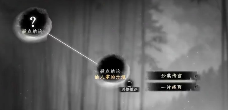 拿到这两个线索后,下一步是前往坐标(1519,1406)处寻找NPC秦卫。与秦卫对话可以获得证词1,这是解密的关键证据之一。将线索1、线索2和证词1进行综合分析后,会发现需要使用仙人掌汁液才能继续解谜。