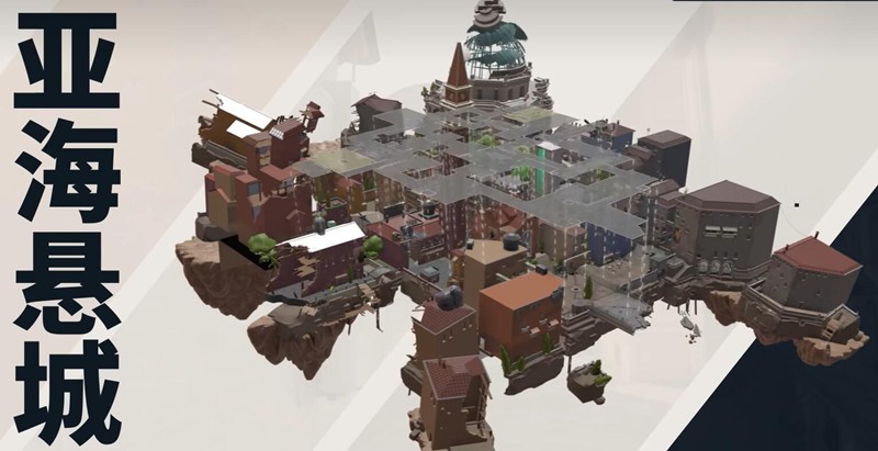 无畏契约源能行动亚海悬城地图是游戏中极具特色的对战场景之一。这张地图在玩家群体中还有个更广为人知的称呼——"义境空岛",它采用了独特的三区域划分设计,为战术对抗提供了丰富的可能性。