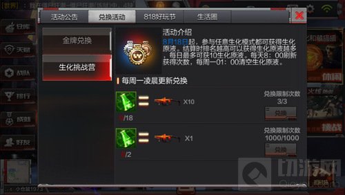 生化挑战营是818活动上线的新兑换活动之一,玩家只需要在游戏中获得生化原液,即可兑换相应武器碎片,玩法简单。