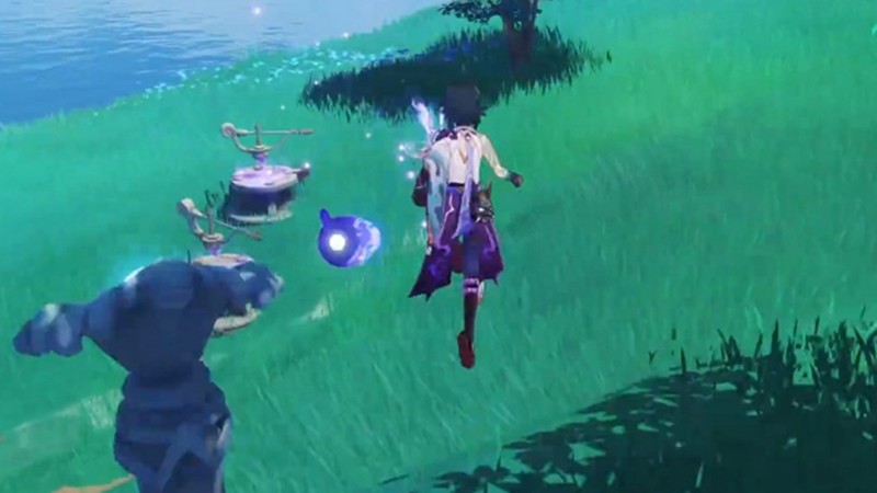 解谜的关键在于中间指针的调整。如果身上带有雷种子,直接站在中间指针与佛像之间的路径上,靠近指针即可完成校准。没有雷种子的情况下,可以靠近右侧雷灵获得感电效果,再回到中间指针位置同样能触发解谜机制。